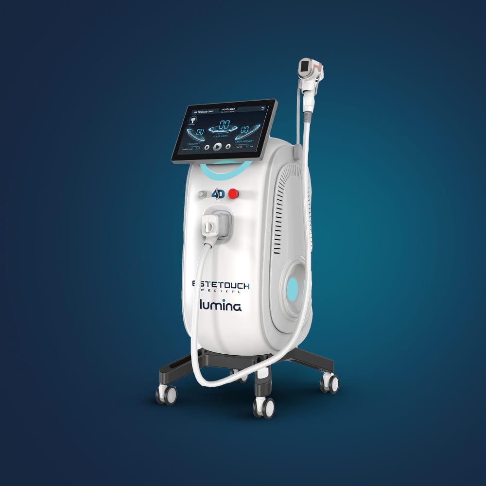 ESTETOUCH MEDİKAL, lazer epilasyonda standartları yeniden belirleyen Lumina‘yı sunar. Tüm cilt ve kıl tiplerine yönelik geliştirilen bu yenilikçi sistem, dört temel dalga boyunu (755nm, 808nm, 940nm, 1064nm) tek bir platformda bir araya getirerek her danışanınız için kişiselleştirilmiş, güvenli ve üstün sonuçlar almanızı sağlar. Lumina ile kliniğinizde kalıcı epilasyon hizmetini mükemmelliğe taşıyın.